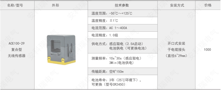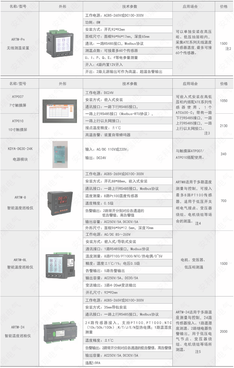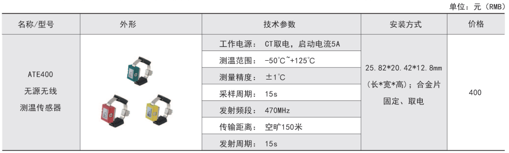 綜上所述,確定型號為:無線測溫裝置:ARTM-P9-300,1臺;無線測溫傳感器:ATE300,9個