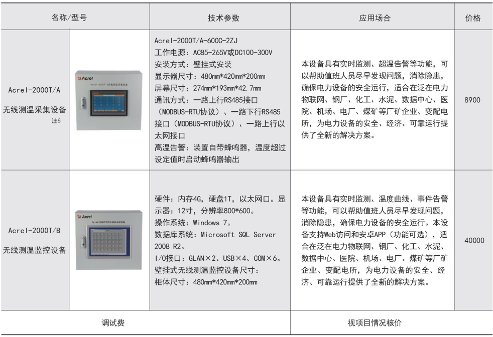 綜上所述,確定型號為:無線測溫集中觸摸屏:AARTM-7062HT-4(HI),1臺;無線測溫傳感器:ATE200,90個;無線測溫收發(fā)器:ATC200,10個