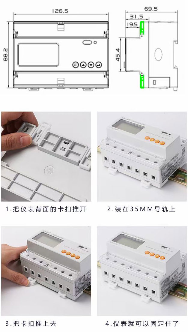 該系列產(chǎn)品采用DIN35mm導(dǎo)軌式安裝結(jié)構(gòu),體積小巧,能測(cè)量電能及其他電參量,可進(jìn)行時(shí)鐘、費(fèi)率時(shí)段等參數(shù)設(shè)置,精度高、可靠性好、性能指標(biāo)符合國(guó)標(biāo)GB/T17215-2002、GB/T17883-1999和電力行業(yè)標(biāo)準(zhǔn)DL/T614-2007對(duì)電能表的各項(xiàng)技術(shù)要求,并且具有電能脈沖輸出功能;可用RS485通訊接口與上位機(jī)實(shí)現(xiàn)數(shù)據(jù)交換。