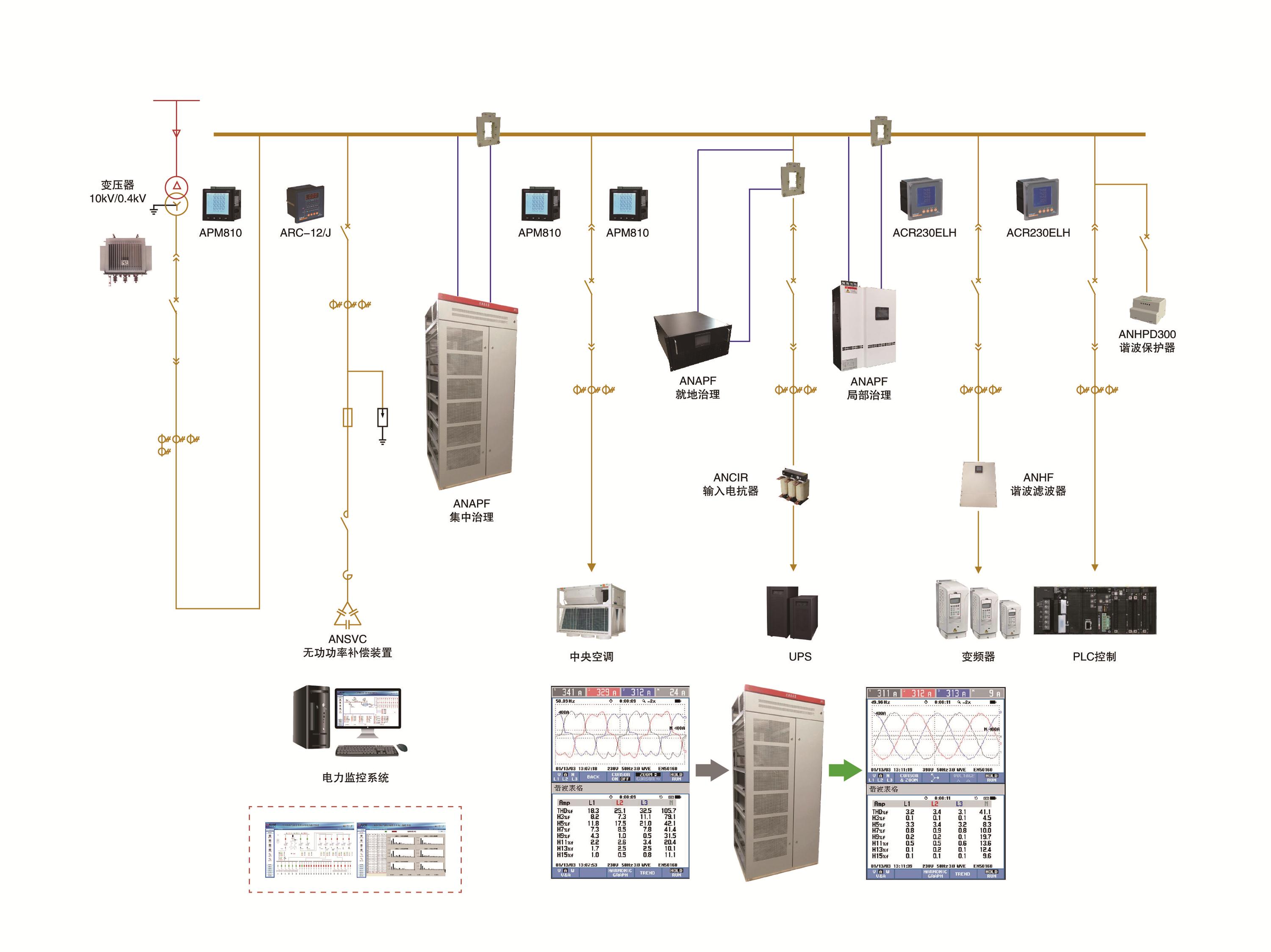 該系列諧波濾波器是一個無源系列的連接低通濾波的電感電容系統,用于消除由三相全波變頻負載產生的特有的5、7、11次等低頻諧波,它不需要單個調節或按不同的諧波源進行移相。