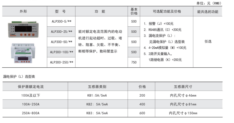 技術要求:輸入電壓AC 220V;工作頻率50Hz;電流變比200A/5A;漏電保護KB2模塊;準確級0.5。
