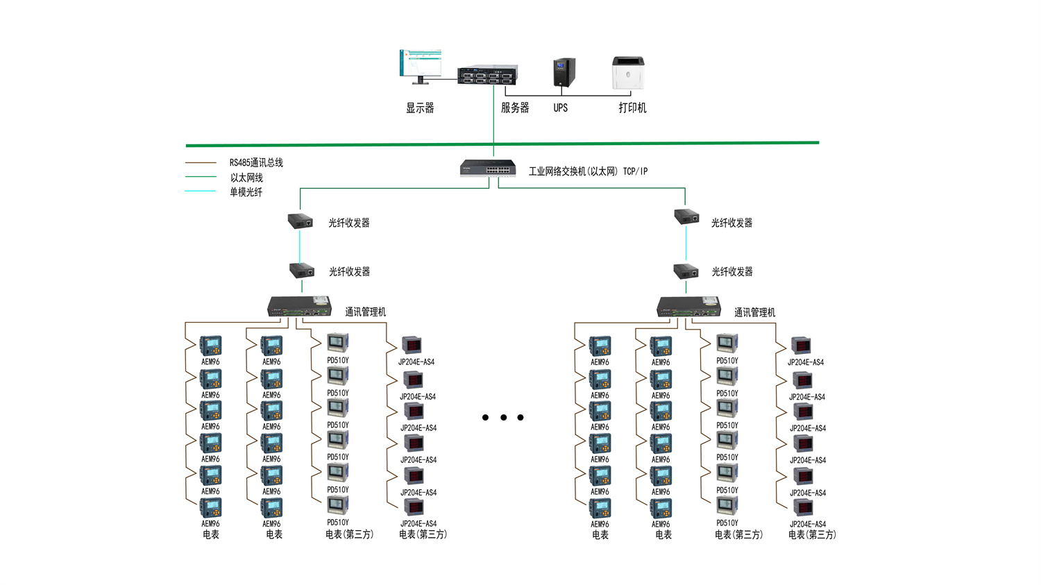 本項目電壓等級包含35kV、10kV及04kV,共安裝628只多功能數(shù)顯儀表,14只溫控儀。實現(xiàn)各回路及設(shè)備實時在線監(jiān)測、故障報警、用能統(tǒng)計、能效分析等功能。