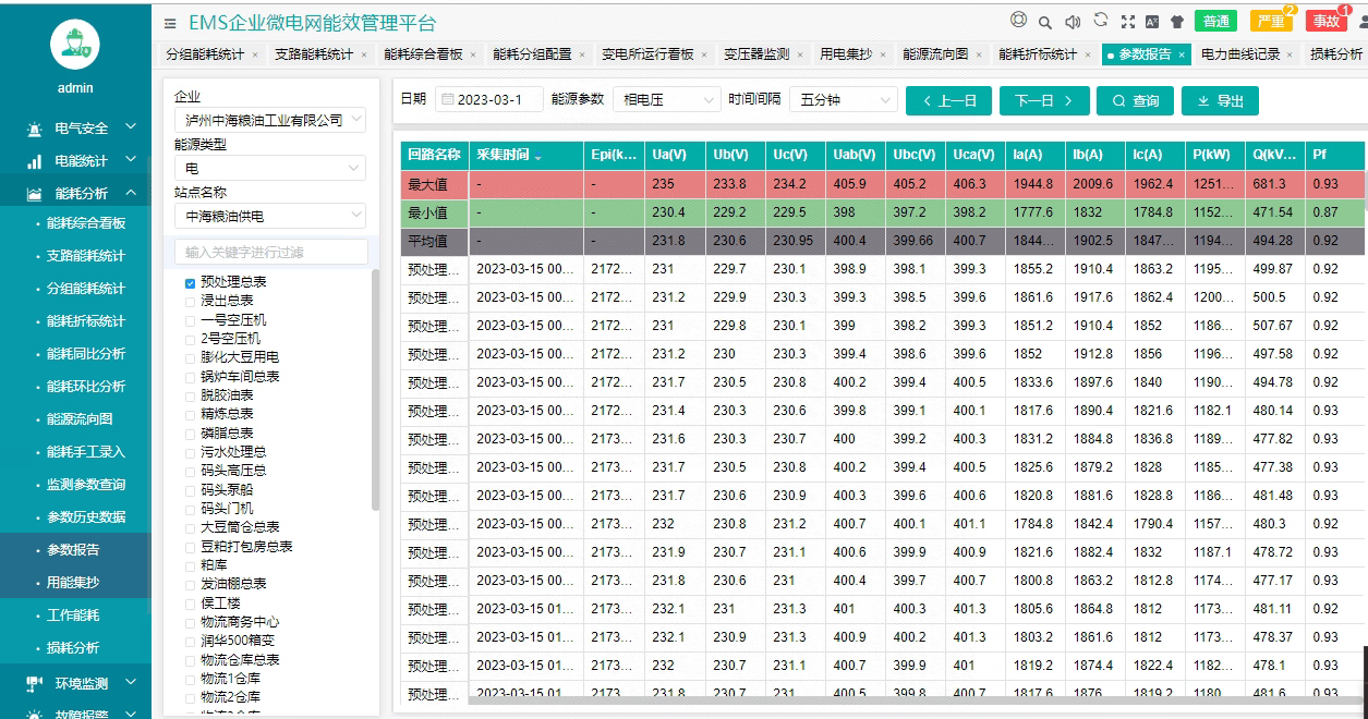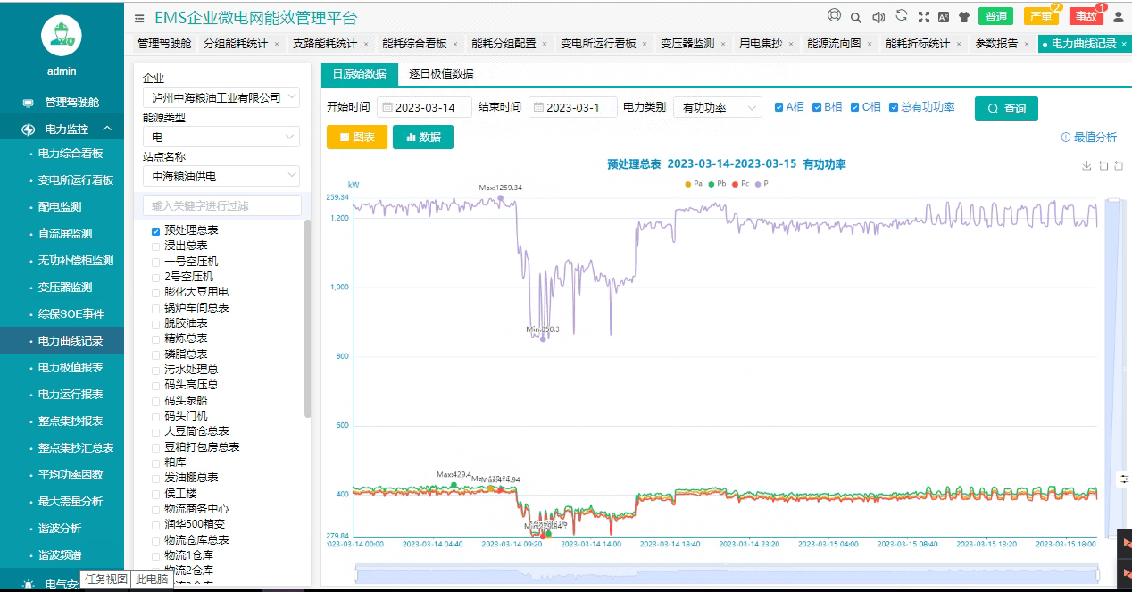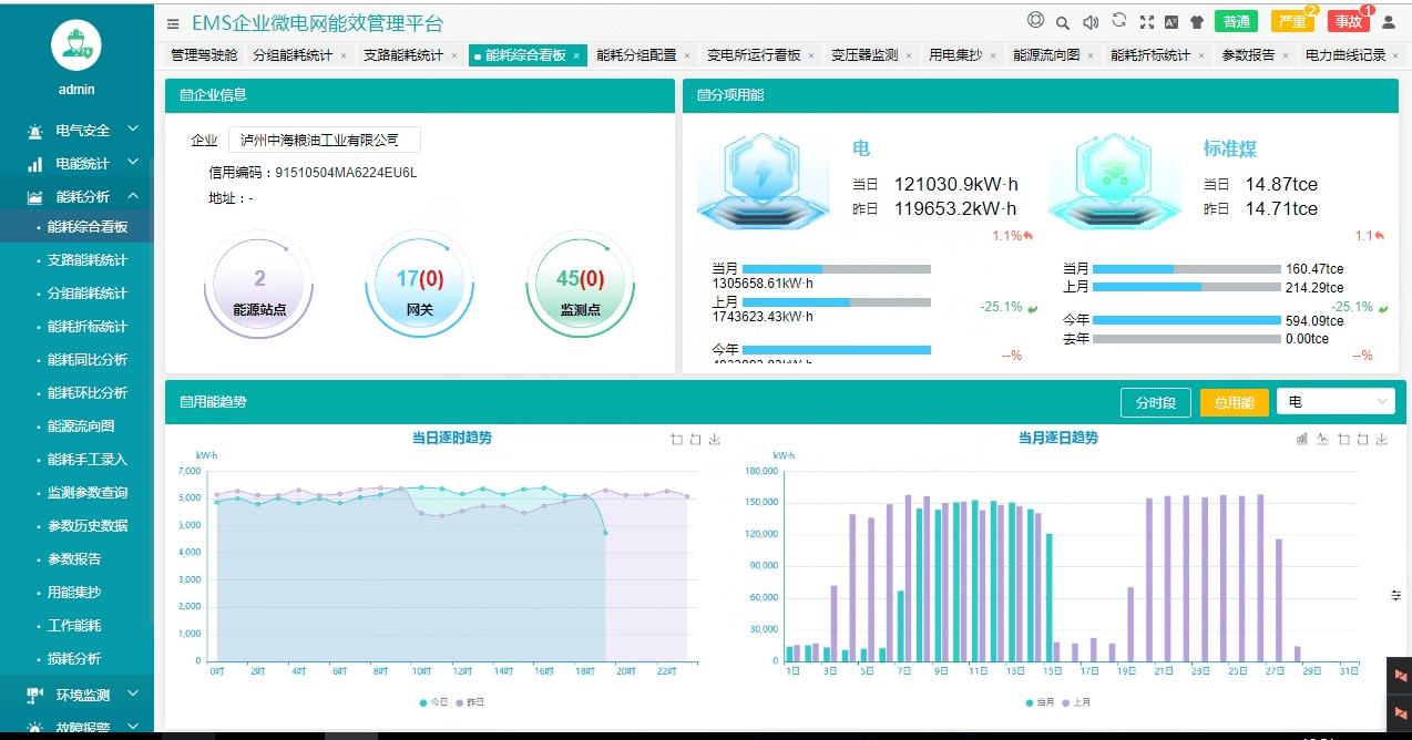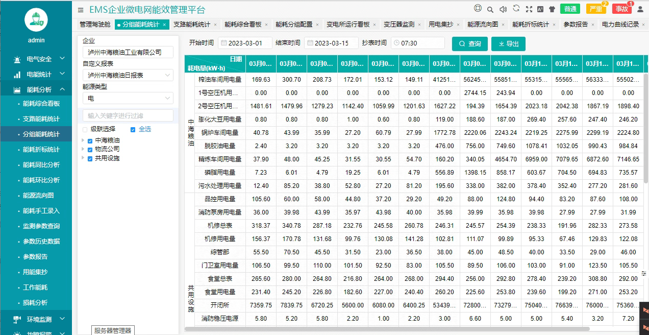 瀘州中海糧油能耗監測系統改造項目EMS系統能夠分析建筑物內部的用電、用水、用氣等數據,幫助用戶發現并降低使用能源的浪費,進而減少能源耗費,節約能耗成本。
