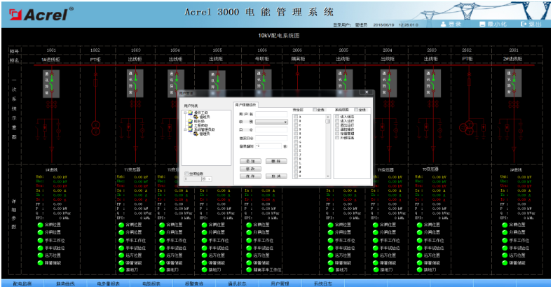 系統(tǒng)為保障系統(tǒng)安全穩(wěn)定運(yùn)行,設(shè)置了用戶權(quán)限管理功能。通過用戶權(quán)限管理能夠防止未經(jīng)授權(quán)的操作(如配電回路名稱修改等)??梢远x不同級別用戶的登錄名、密碼及操作權(quán)限,為系統(tǒng)運(yùn)行、維護(hù)、管理提供可靠的安全保障。