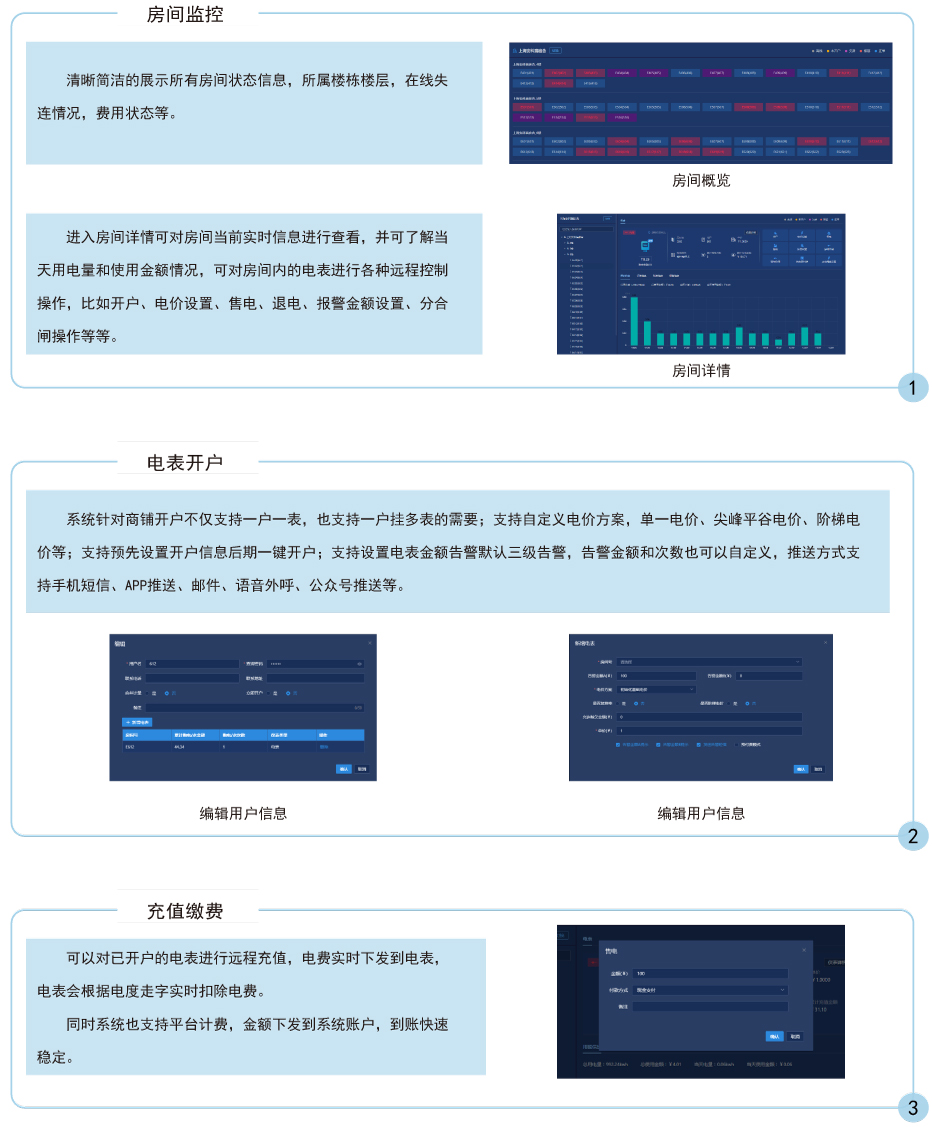 主要完成電能表/水表參數(shù)設(shè)置,商戶售電/售水管理及能耗管理工作,操作簡(jiǎn)便,實(shí)現(xiàn)物業(yè)公司遠(yuǎn)程實(shí)時(shí)操作實(shí)時(shí)監(jiān)控,具有良好的人機(jī)界面,能夠有效的統(tǒng)計(jì)和管理數(shù)據(jù)。安裝方便,是用電管理部門(mén)、商業(yè)廣場(chǎng)和物業(yè)小區(qū),提高用電用水管理水平,解決收費(fèi)難問(wèn)題的理想產(chǎn)品。