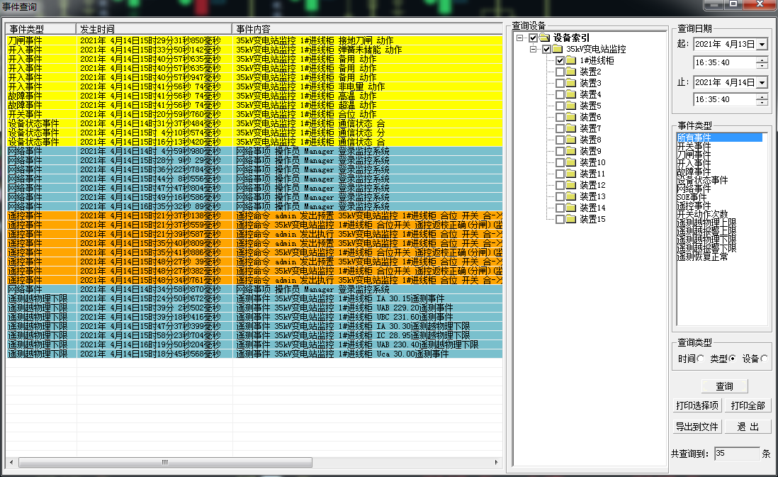 Acrel-1000綜合自動化監(jiān)控系統(tǒng)能夠?qū)b信變位,保護動作、事故跳閘,以及電壓、電流、功率、功率因數(shù)越限等事件記錄進行存儲和管理,方便用戶對系統(tǒng)事件和進行歷史追溯、查詢統(tǒng)計、事故分析。可以按時間、類型和設備進行查詢和排序。