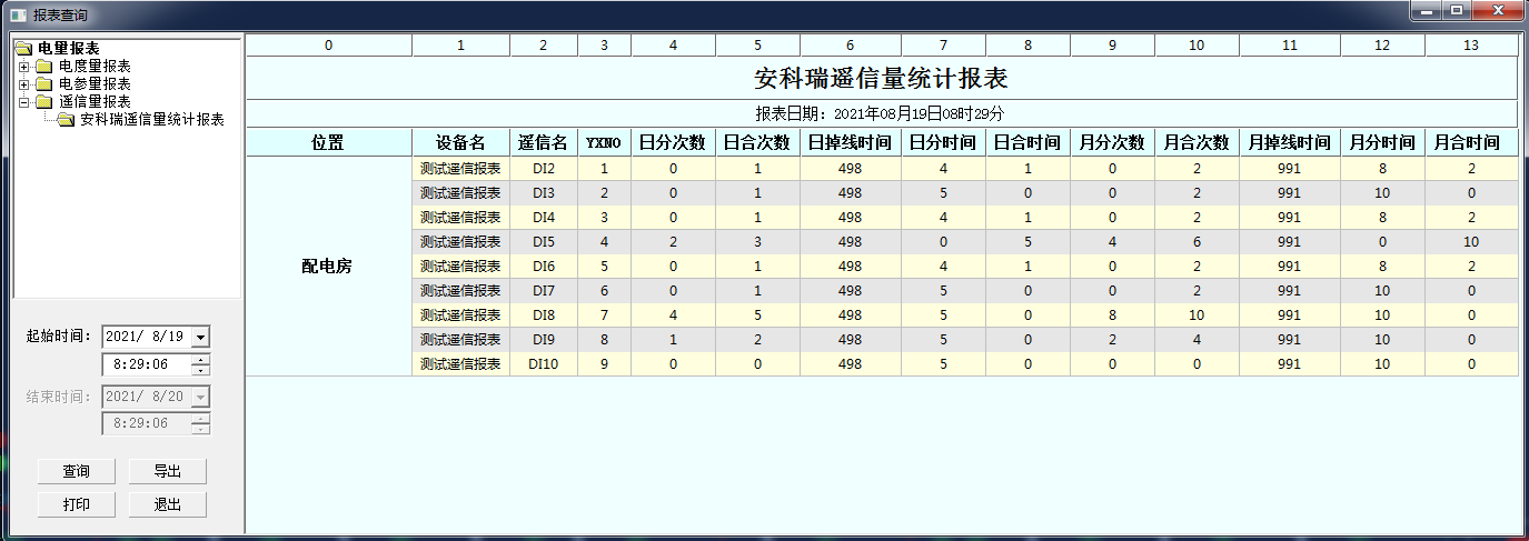 Acrel-1000綜合自動化監(jiān)控系統(tǒng)具備對開關分合次數(shù)統(tǒng)計功能,用戶可以自由查詢自系統(tǒng)正常運行以來各開關量每日、月分合次數(shù),分合時間以及掉線時間。