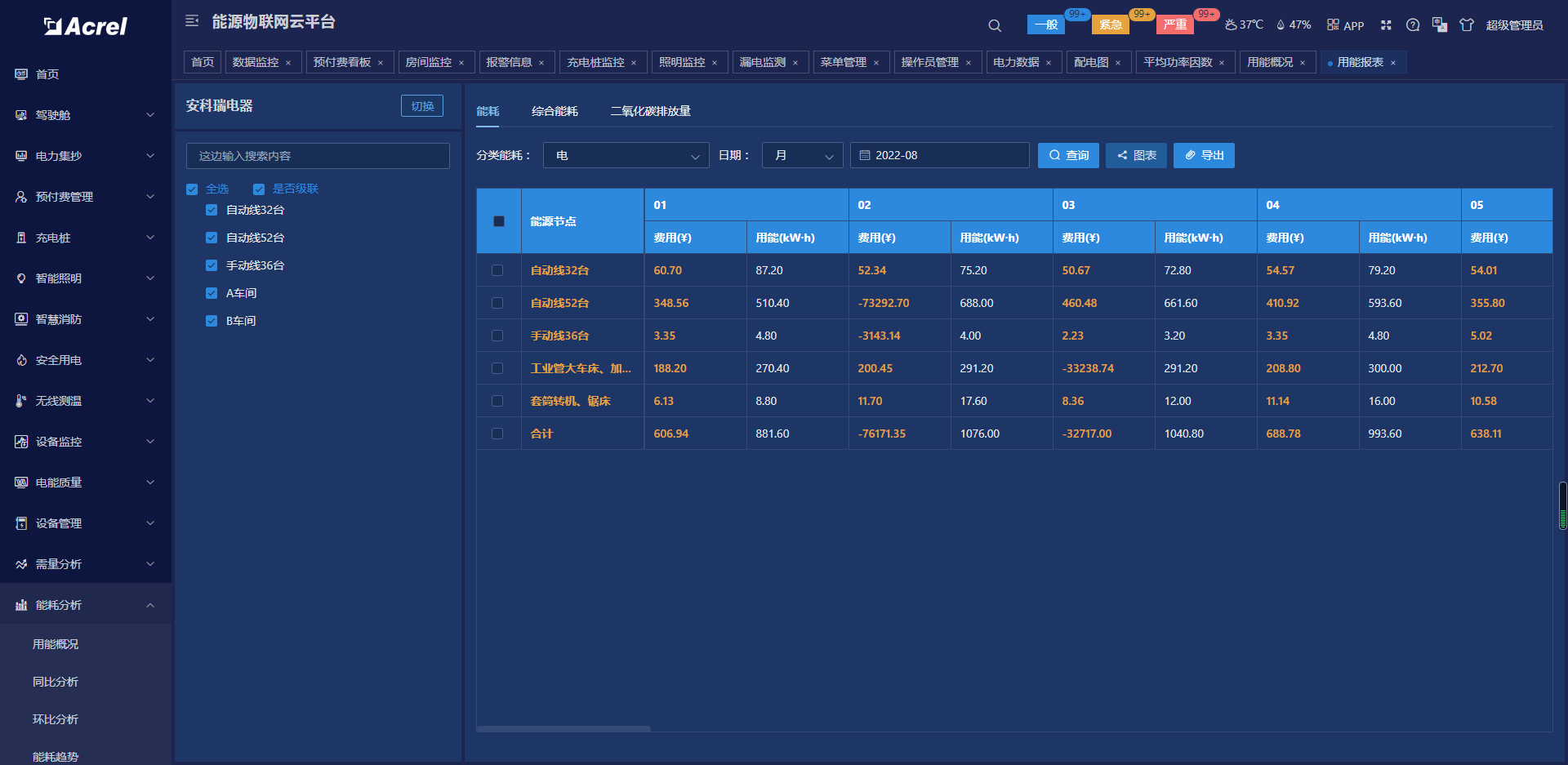 能耗分析模塊采用自動化、信息化技術,實現從能源數據采集、過程監控、能源介質消耗分析、能耗管理等全過程的自動化、科學化管理,使能源管理、能源生產以及使用的全過程有機結合起來,運用先進的數據處理與分析技術,進行離線生產分析與管理,實現全廠能源系統的統一調度,優化能源介質平衡、有效利用能源,提高能源質量、降低能源消耗,達到節能降耗和提升整體能源管理水平的目的。