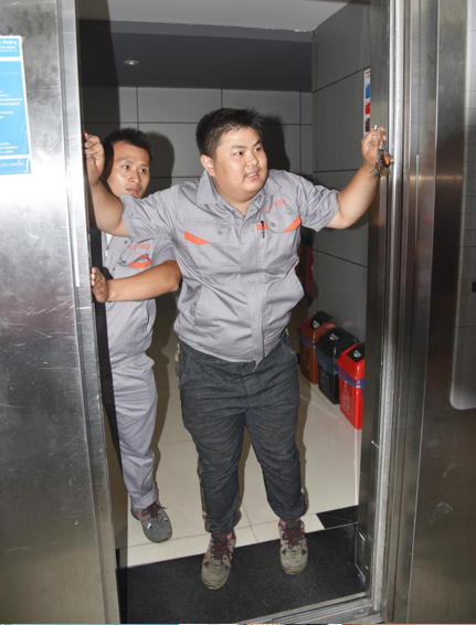 第二項(xiàng)特種設(shè)備事故應(yīng)急演練,模擬公司一電梯發(fā)生困人事故,電梯維保員接到電話后,快速到達(dá)事故現(xiàn)場(chǎng),協(xié)同應(yīng)急救援小組實(shí)施解救被困人員。
