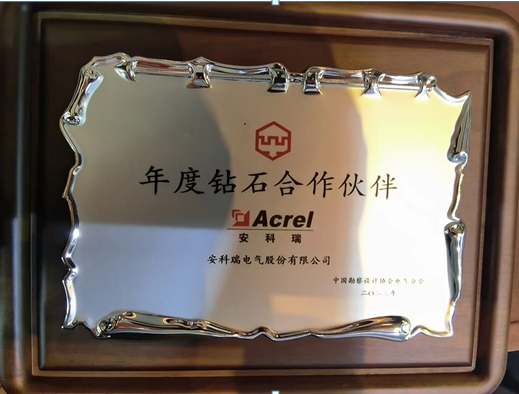 在年度合作伙伴表彰儀式上,黑龍江省設(shè)計大師、哈工大院機電總工李曉東,中國院顧問總工陳琪為安科瑞電氣股份有限公司頒發(fā)鉆石合作伙伴獎牌。