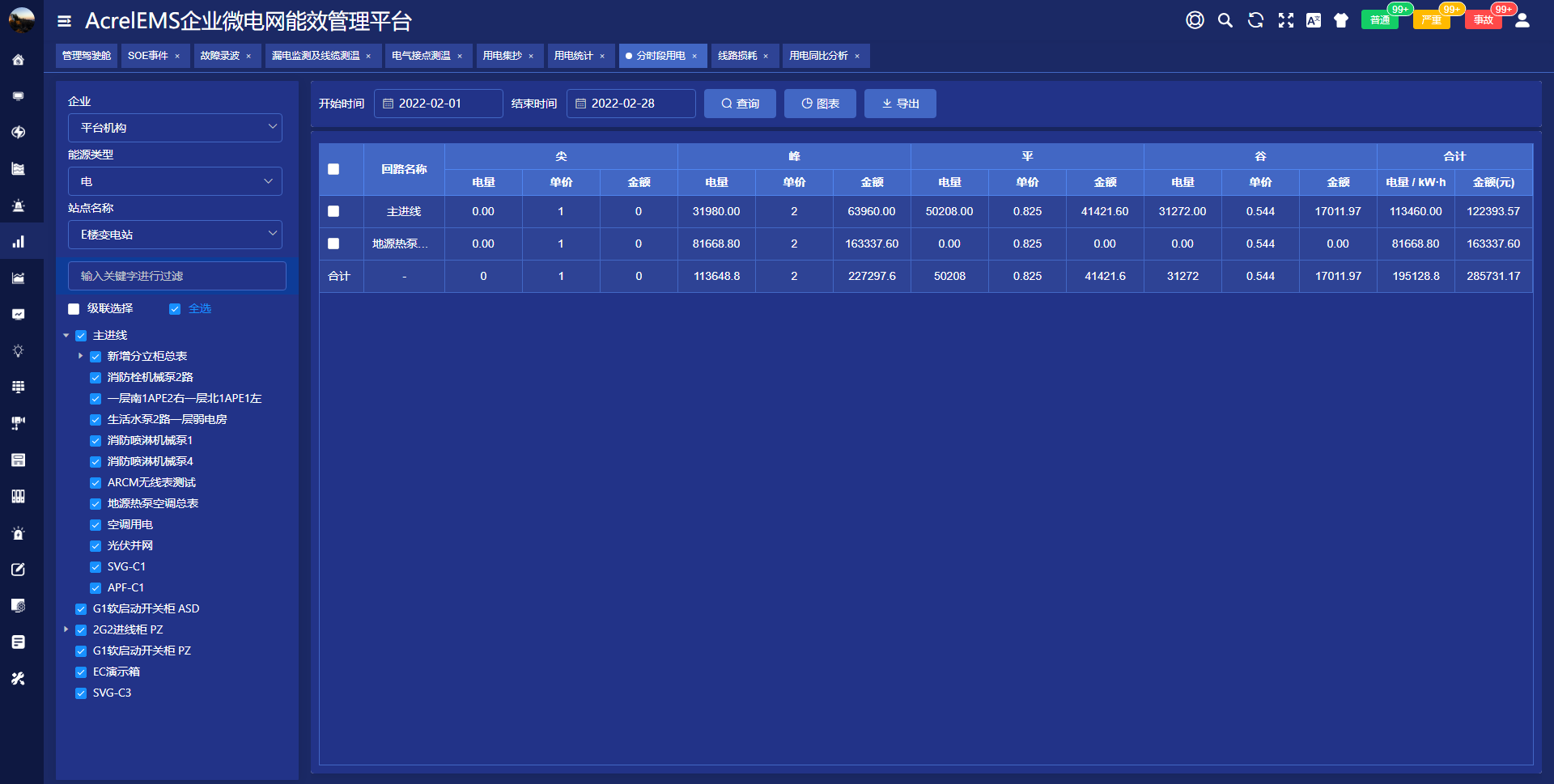 電力監控系統以豐富的報表體支撐量體系的完整性。系統具備定時抄表匯總統計功能,用戶可以自由查詢自系統正常運行以來任意時間段內各配電節點的用電情況,即該節點進線用電量與各分支回路消耗電量的統計分析報表。