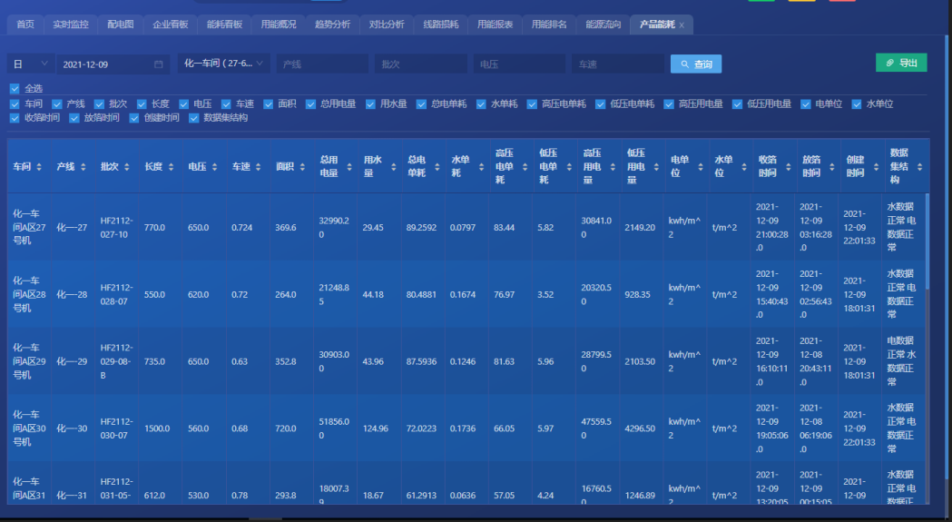 系統(tǒng)根據(jù)能源消耗及生產(chǎn)計劃安排計算區(qū)間產(chǎn)品噸水電耗或萬元產(chǎn)值能耗,從而制定能源績效考核。
