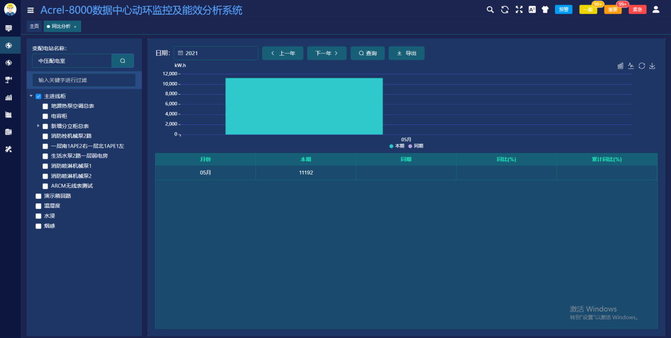顯示各個用電回路同期用能情況。顯示增長或者下降比例。