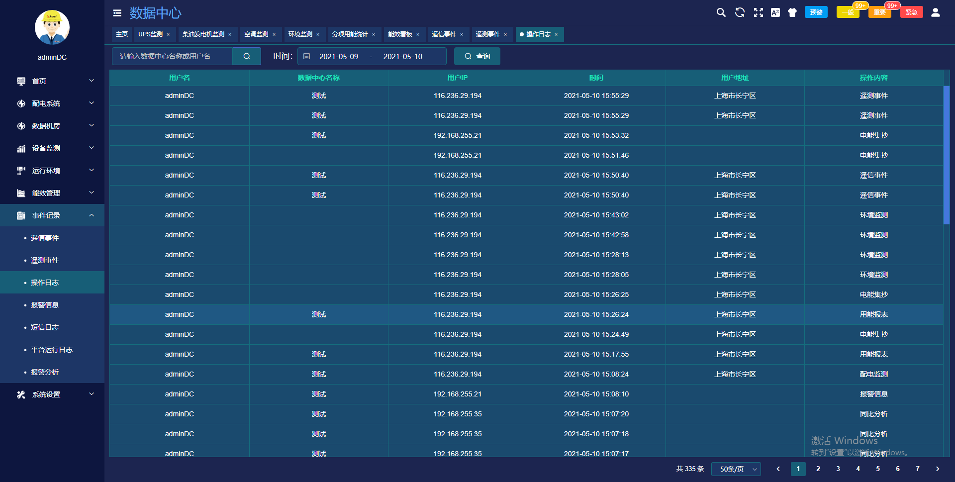 顯示當前數據中心下的用戶,操作該平臺的操作記錄。