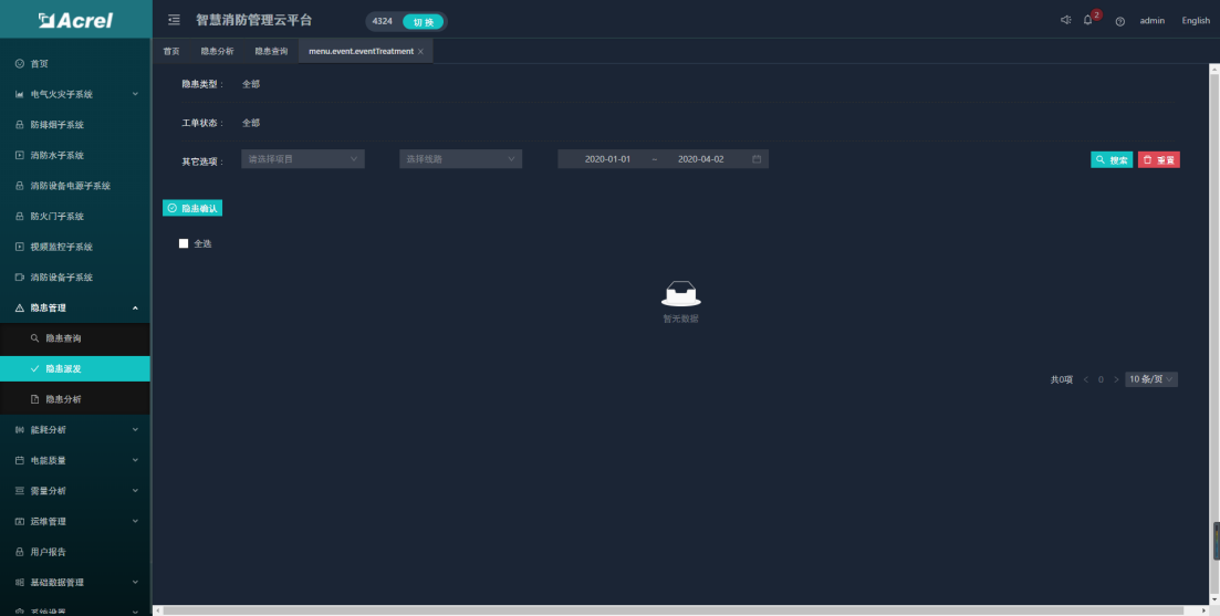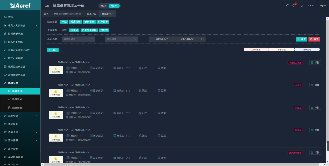 在對于系統(tǒng)產(chǎn)生的隱患記錄,相關(guān)人員能夠?qū)ο鄳?yīng)記錄對應(yīng)的設(shè)備進行操作。