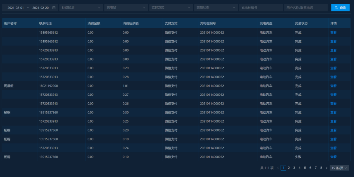 平臺首頁顯示每天的開戶數(shù)、充值金額、充電金額、充電度數(shù)、充電次數(shù)、充電時長,累計的開戶數(shù)、充值金額、充電金額、充電度數(shù)、充電次數(shù)、充電時長,以及相應的環(huán)比增長和同比增長以及項目信息地圖導航。