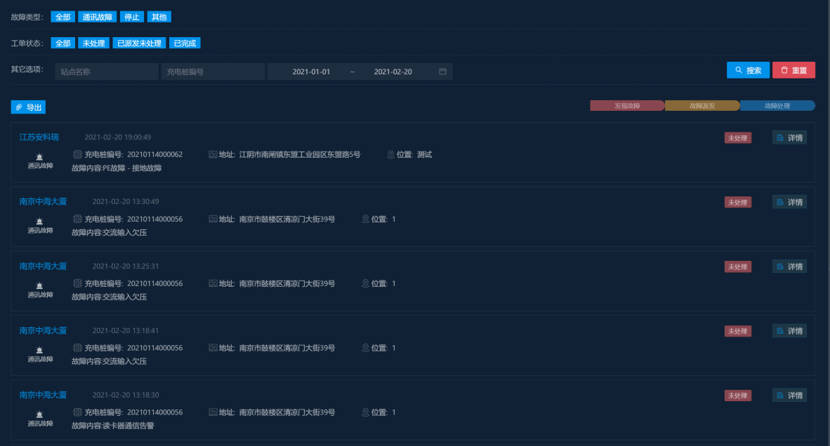 故障管理包括故障代碼、故障記錄、故障處理、故障分析等管理項,為用戶管理故障和查詢提供方便。